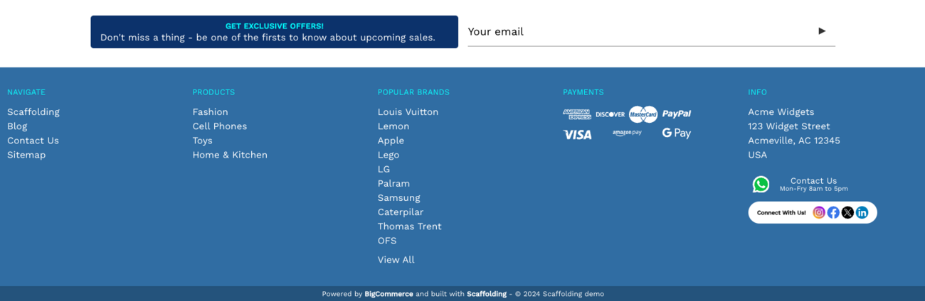 Showcase "Powered by BigCommerce and build with Scaffolding"