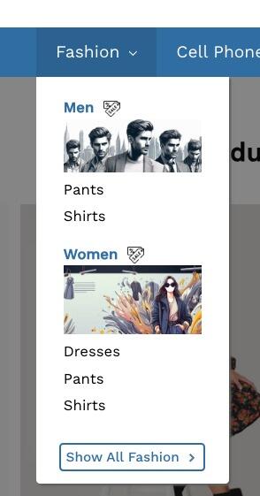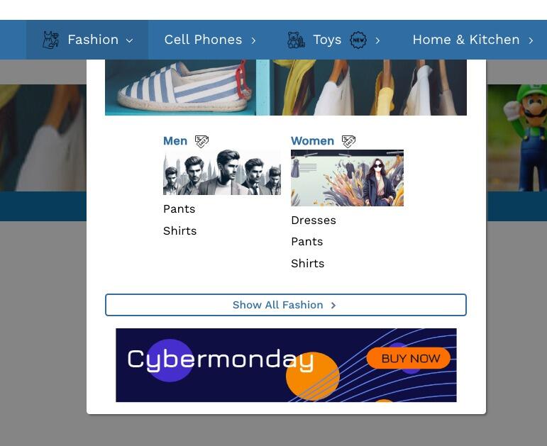 Mega menu allows you to place a banner at the bottom of the menu on desktop and at the top on mobile.